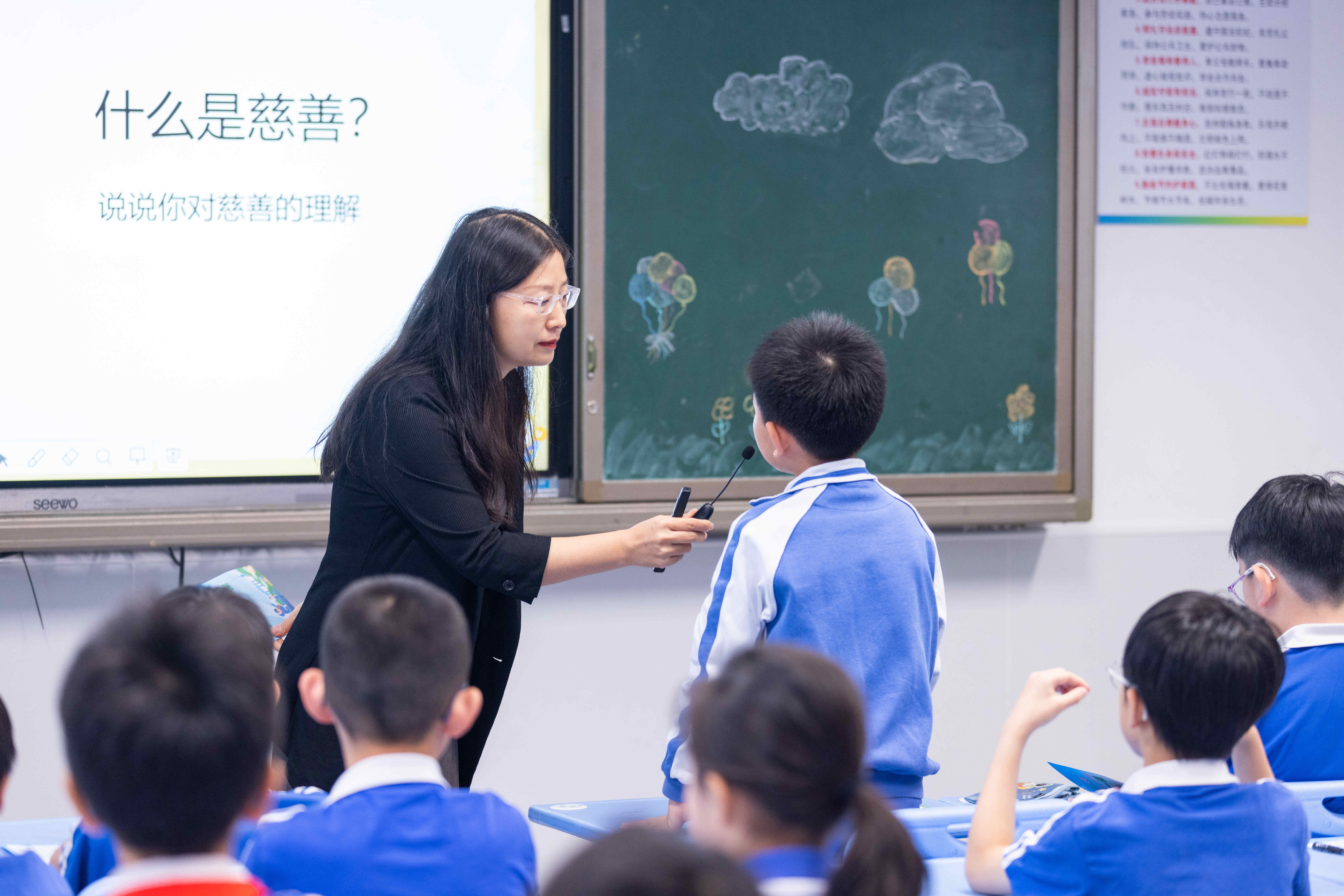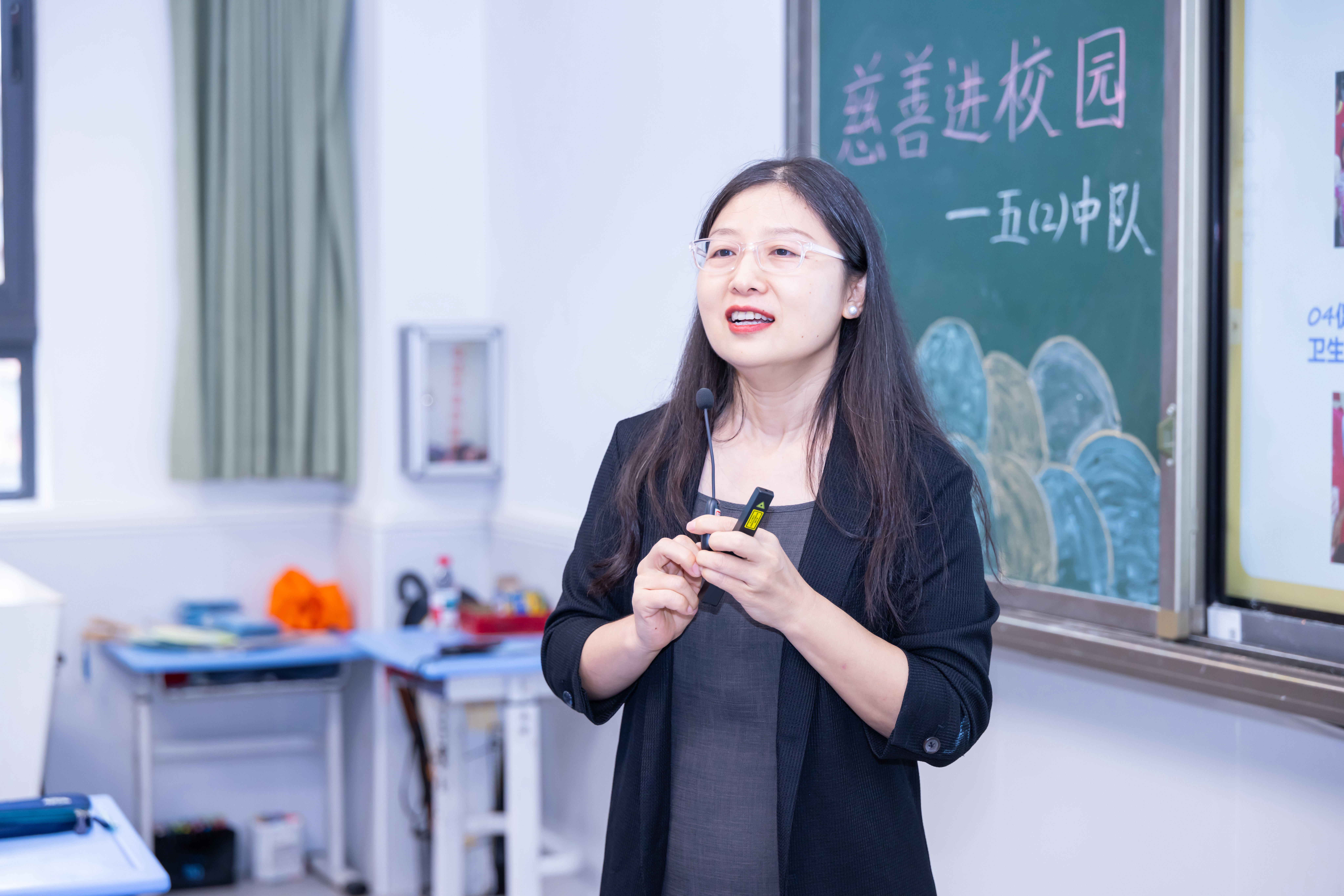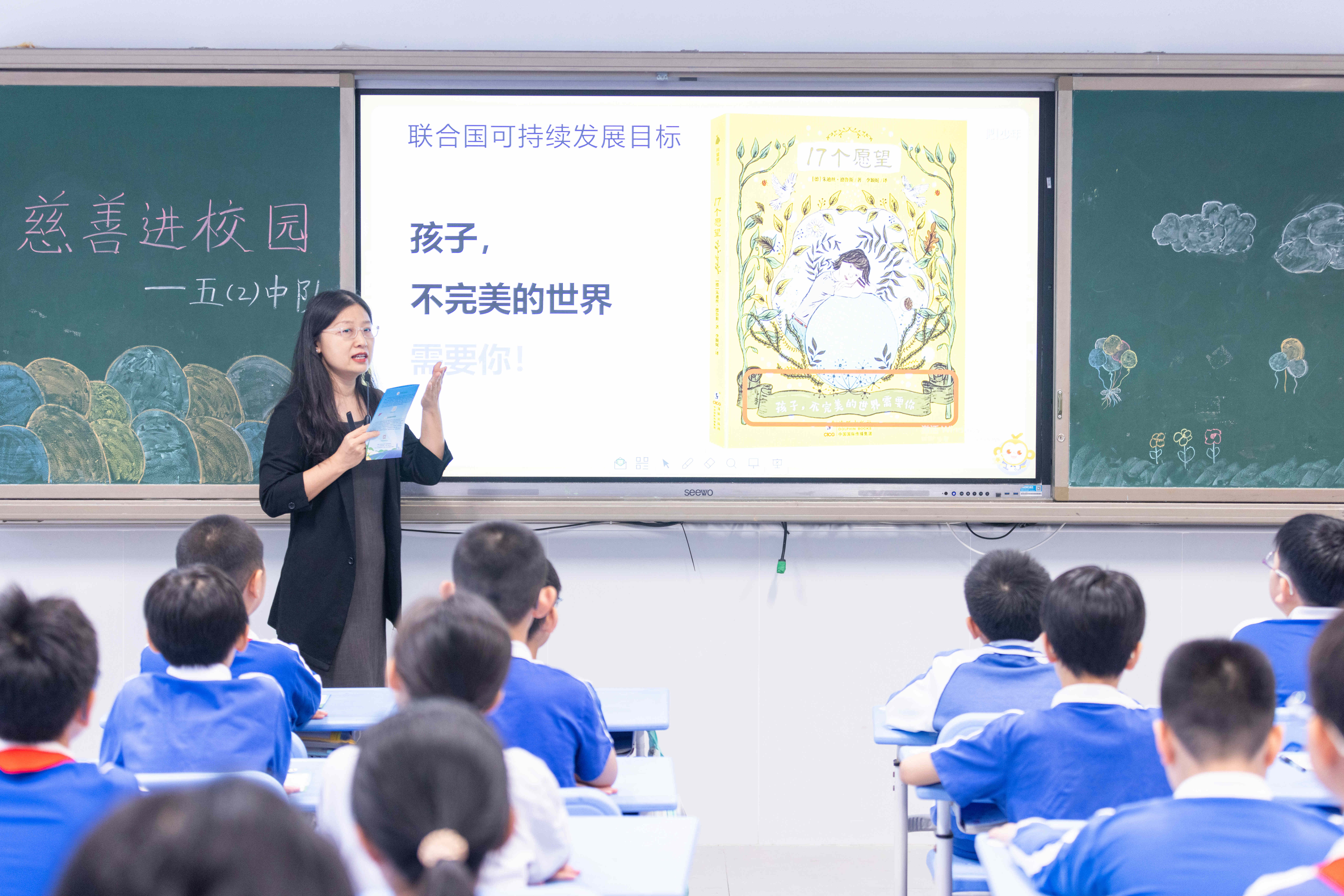阅读公益组织三叶草故事家族创始人李迪老师围绕“我有一个愿望——开启我的慈善之旅”展开讲座。她以绘本《17个愿望》导入,引导学生思考“若能许愿,你希望世界怎样”,同学们积极分享心中期待。