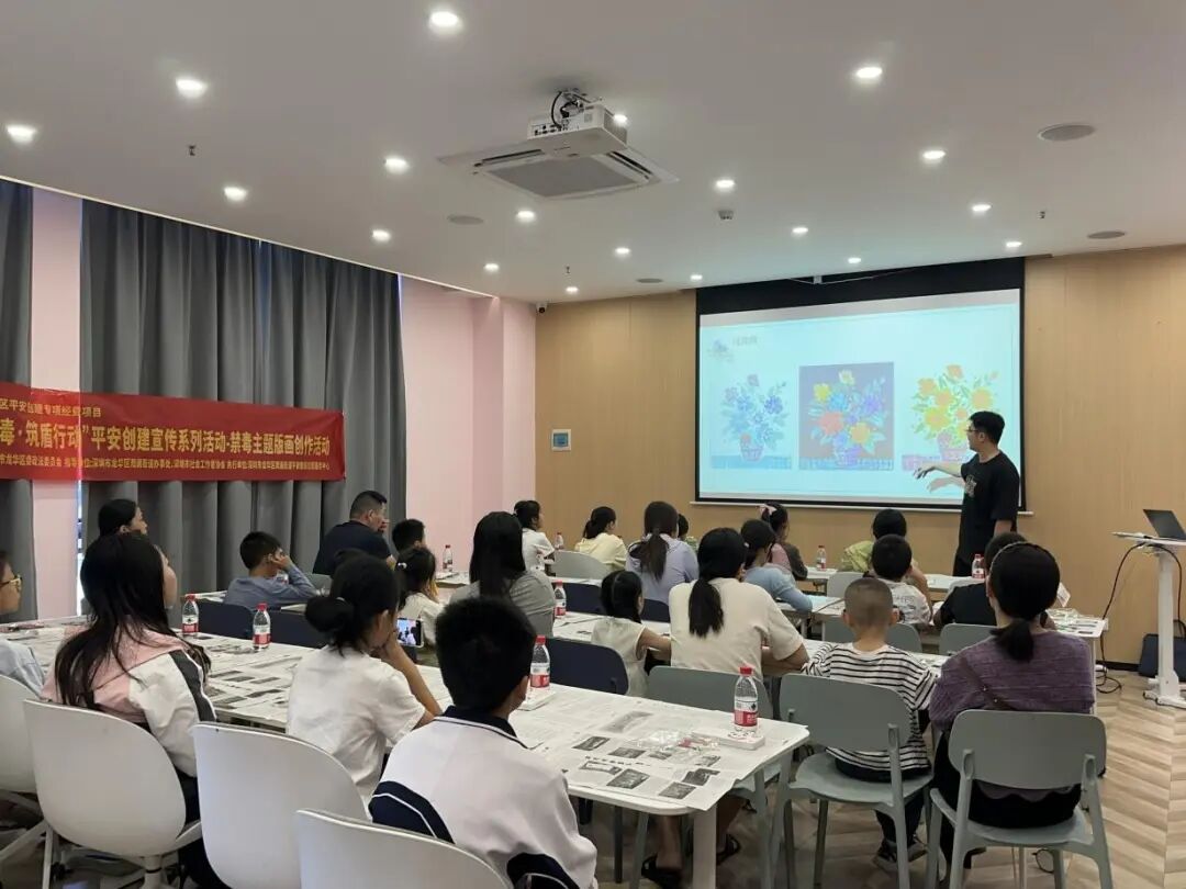 近日,龙华区观澜街道组织25名社区青少年走进观澜街道平安教育基地开展“反诈禁毒・筑盾行动”平安创建宣传系列活动——禁毒主题版画创作活动,通过将传统版画艺术与禁毒教育深度融合,为辖区青少年打造了一堂生动有趣的安全教育课。