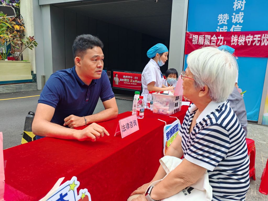 罗湖家园网讯:为深入推进“百千万工程”,切实提升居民的防诈反诈能力,11月7日全民反诈日当天,在桂园街道新围社区党委的引领下,新围社区党群服务中心、南风社会工作服务社联合桂园街道司法所、桂园街道禁毒办、桂园街道长者服务中心、滨苑社区警务室、交通银行罗湖支行、新围社康中心及反诈志愿者等多方力量共同开展“银盾聚合力,钱袋守无忧”反诈主题宣传活动,携手筑牢全民防诈安全防线。
