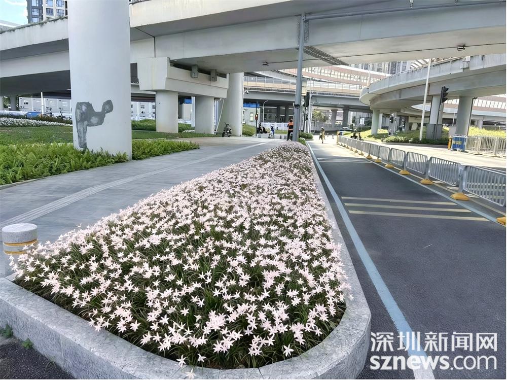 街角焕新·沿河北路低线公园坐落于罗湖区布心路与爱国路交界处的桥下空间。作为爱国路绿街的延伸,该公园秉持“小投入见大成效”的理念焕发新生,这片被活化利用的桥下闲置空间,未来将与泰宁、喜荟社区公园相连,形成一条完整的绿色脉络,持续注入活力。目前,布心路与爱国路交界处的桥下空间已初具规模,杂乱角落被精心梳理成流畅的微坡,点缀其间的初恋风雨兰花以清新柔美的淡粉色调成为空间主角,它们耐候性极强,不畏高温、水淹与严寒,花期从6月绵延至12月。
