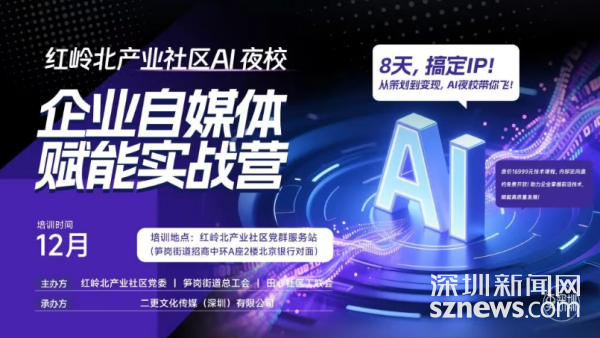 据了解,本次实战营将于2025年12月在红岭北产业社区党群服务站集中开展,通过8大核心模块、密集训练,为企业提供从个人IP打造到平台运营,从内容创造到工具使用,从思维到实操的全方位赋能。