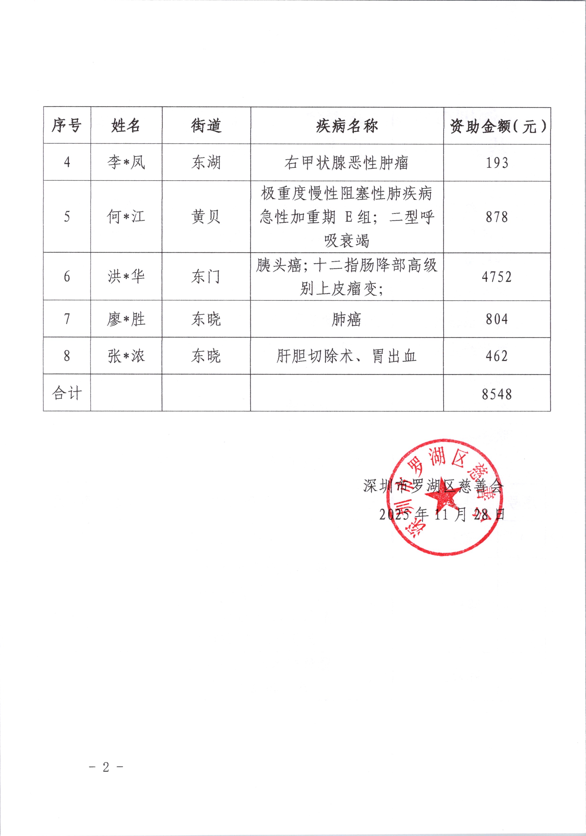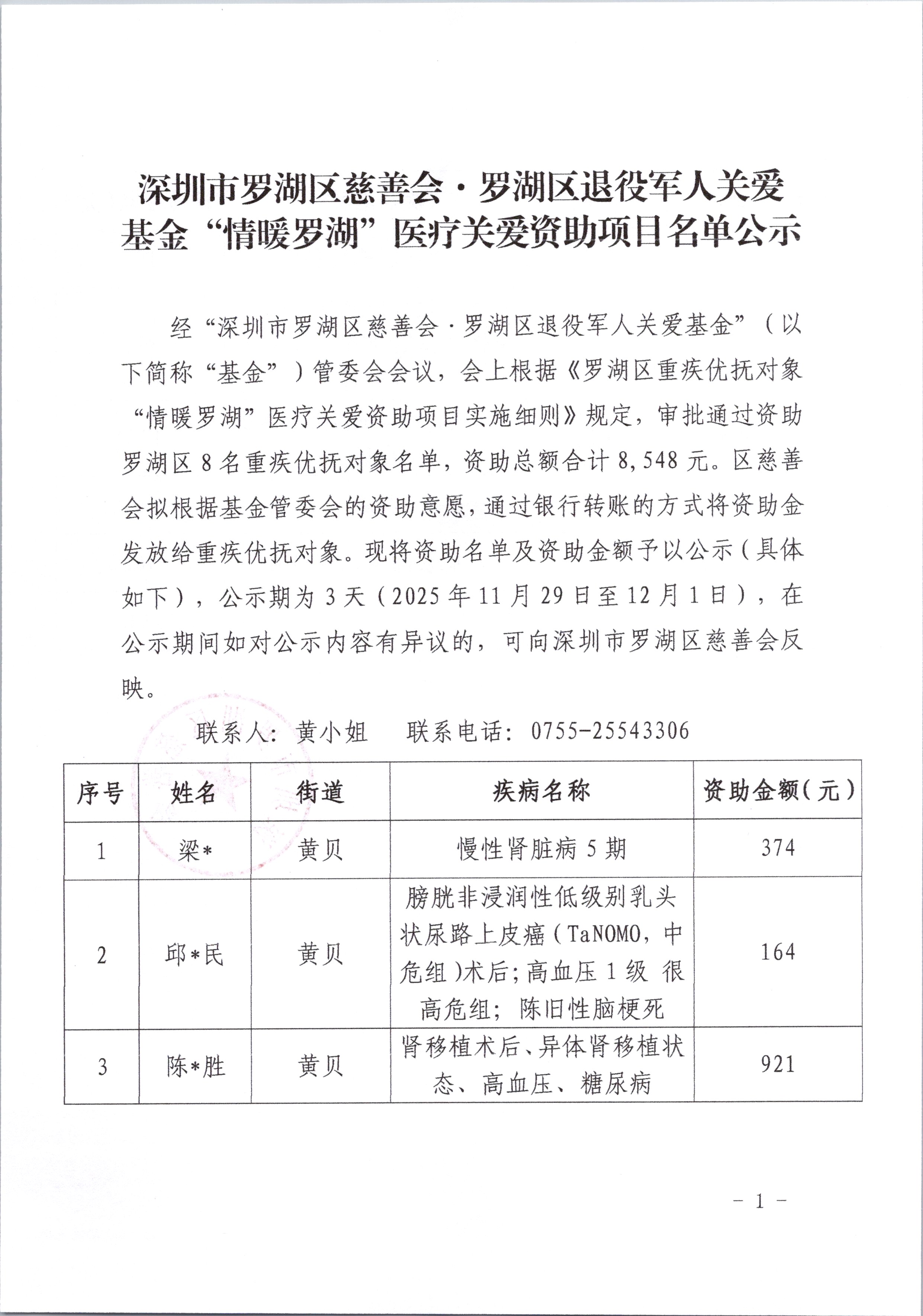 深圳市罗湖区慈善会·罗湖区退役军人关爱基金“情暖罗湖”医疗关爱资助项目名单公示