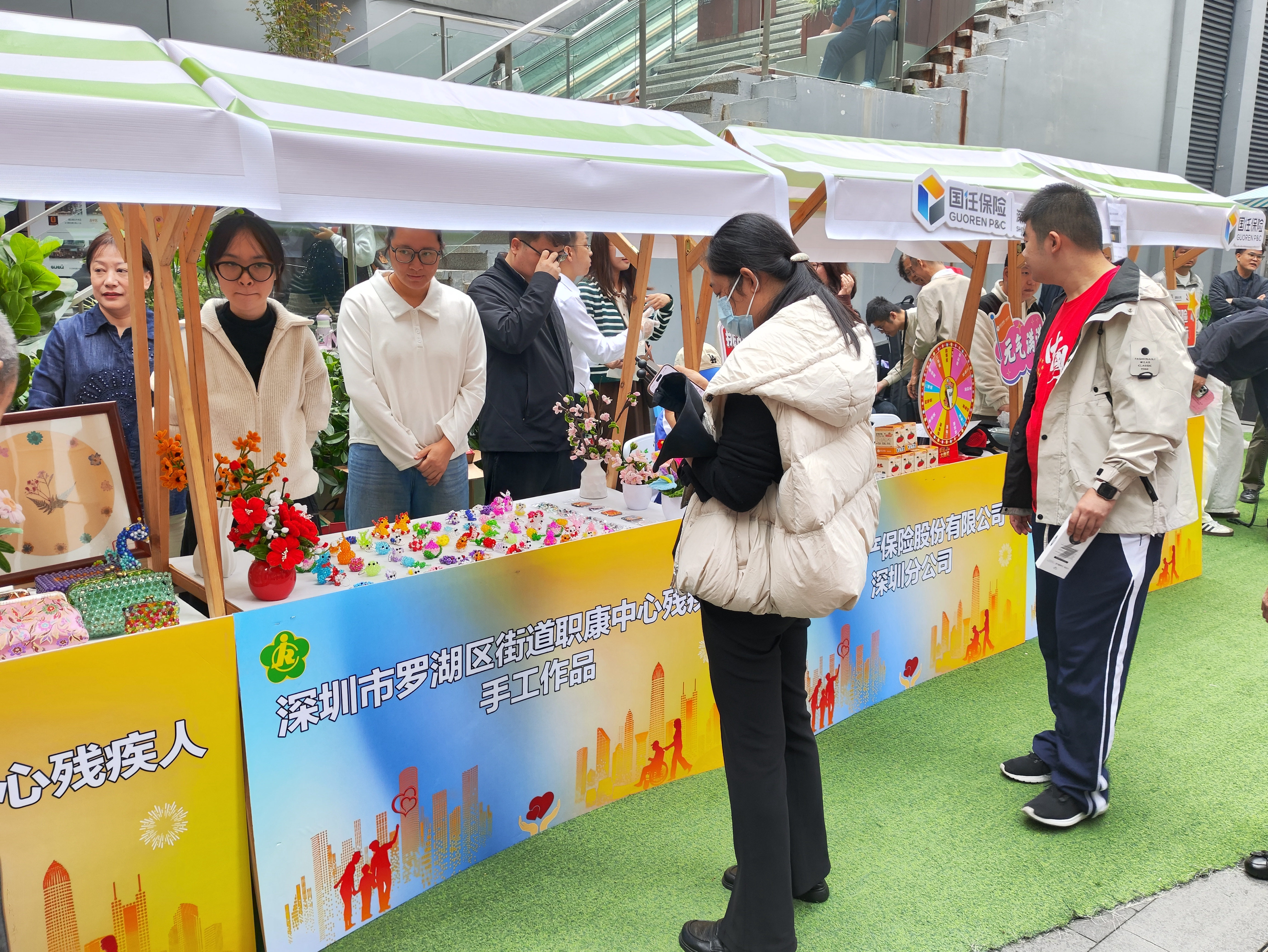 文艺演出结束后,助残公益集市正式开市。本次集市围绕残疾人实际需求与社会公益理念,设置了残疾人艺术作品展示区、爱心义卖区、趣味游戏区和政策宣讲区四大功能板块,为市民打造了一个沉浸式的残健共融体验空间。同时在广场L1层的艺术作品展区内,残疾朋友创作的摄影、书画等作品有序陈列,展现出他们的艺术才华与对生活的热爱,吸引众多市民驻足欣赏。