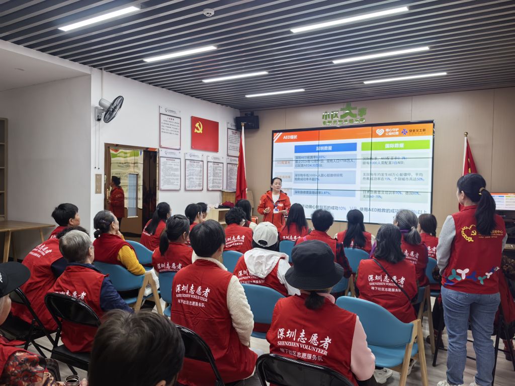 为进一步提升社区志愿者应对突发状况的处置能力,2025年12月3日下午,在莲塘街道坳下社区党委的支持下,坳下社区党群服务中心联合深圳市东西方社工服务社组织开展志愿者应急救援技能普及培训活动。辖区30余名志愿者积极参与,沉浸式学习心肺复苏(CPR)与自动体外除颤器(AED)使用等实用急救技能。