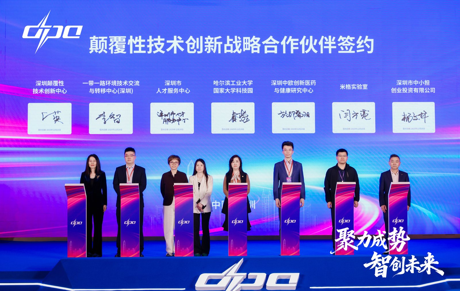 大会现场,深圳颠覆性技术创新中心与一带一路环境技术交流与转移中心、深圳市人才服务中心、哈尔滨工业大学国家大学科技园、深圳中欧创新医药与健康研究中心、米格实验室以及深担集团旗下深担创投签约,共同开启颠覆性技术创新生态战略合作。未来,各方将围绕科研协同、成果转化、资本赋能、人才支撑和国际交流等多个维度展开广泛合作,持续强化颠覆性项目孵化与资源链接,加速创新要素高效流动,不断拓展颠覆性技术应用场景与发展空间。