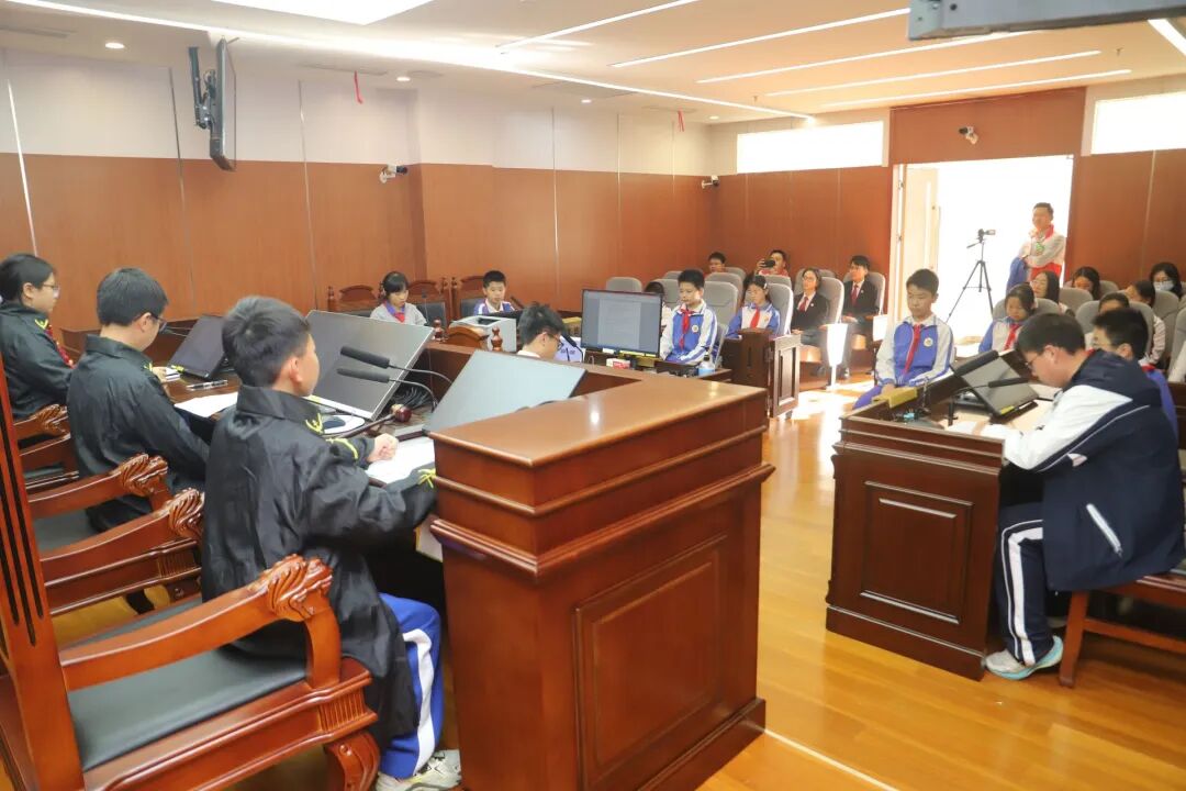 随着书记员清脆的一声“全体起立,请审判长、审判员入庭”,一场模拟校园欺凌为主题的侵权赔偿纠纷案件庭审正式拉开帷幕。12名同学分别化身审判长、审判员、原被告、证人、法警等角色,有条不紊进行法庭调查、法庭辩论、最后陈述、宣判等各项流程。一招一式间,学生们将庭审的严谨与规范展现得淋漓尽致。法官趁热打铁点评,结合民法典、未成年人保护法等相关法律条款,解读校园欺凌的法律后果,让同学们在角色扮演中沉浸式学法。