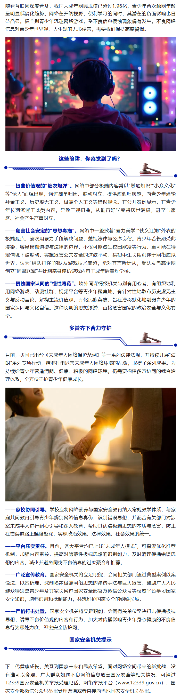 国家安全部微信公众号12月16日发布《合力守护青少年网络空间清朗》,全文如下: