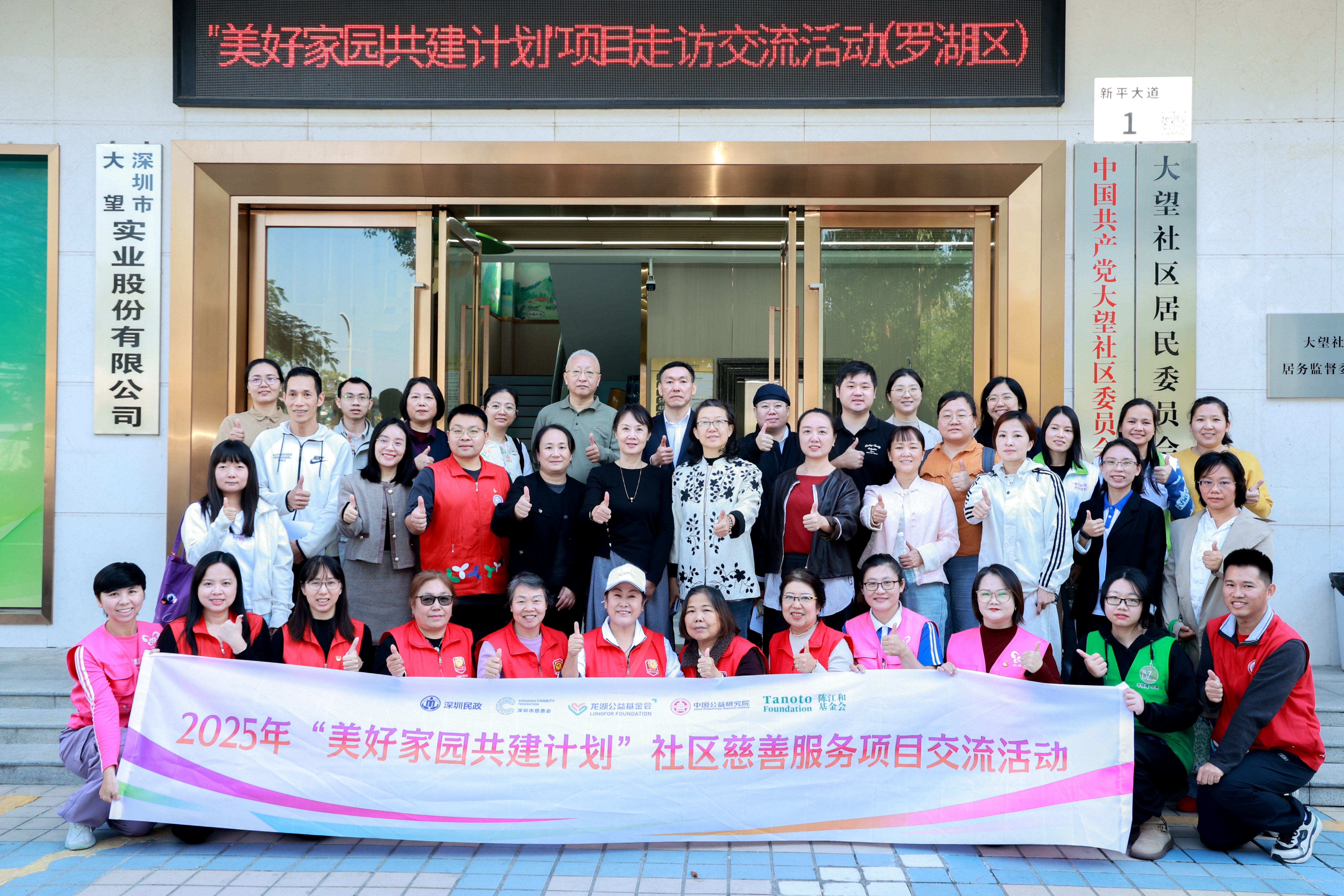 参访团一行抵达罗湖区东湖街道大望社区,了解社区在“美好家园共建计划”的支持下整体发展布局与慈善项目落地情况。
