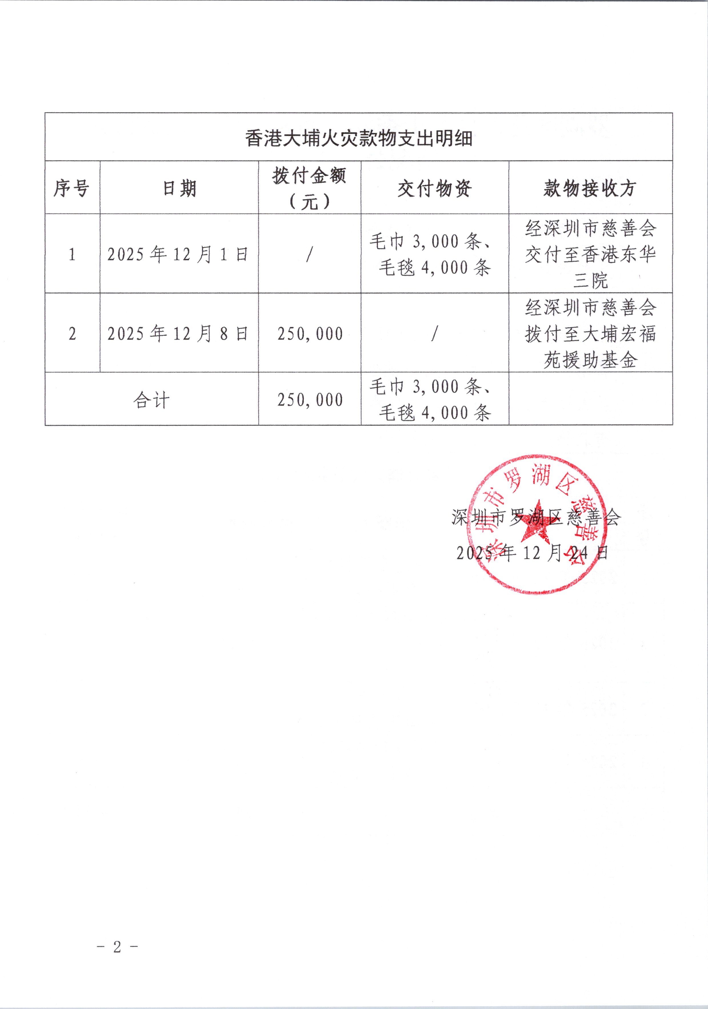 罗湖区慈善会关于香港大埔火灾社会捐赠收支情况公示(二)