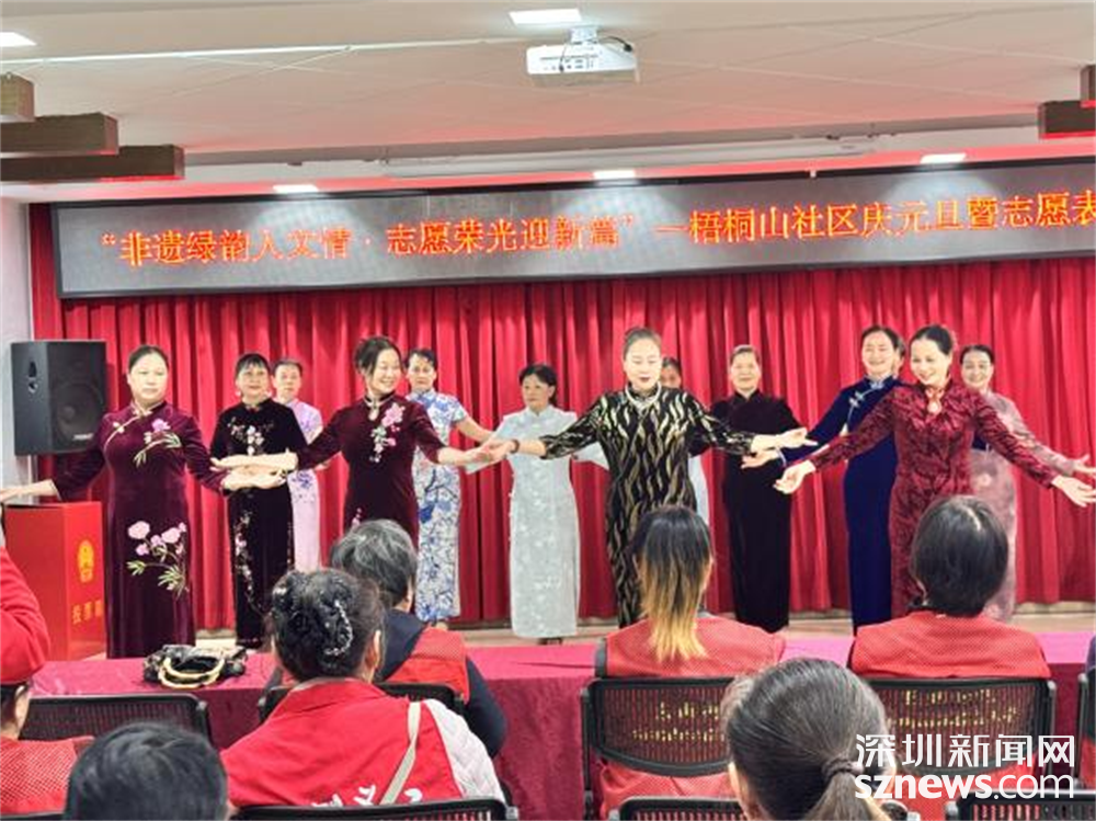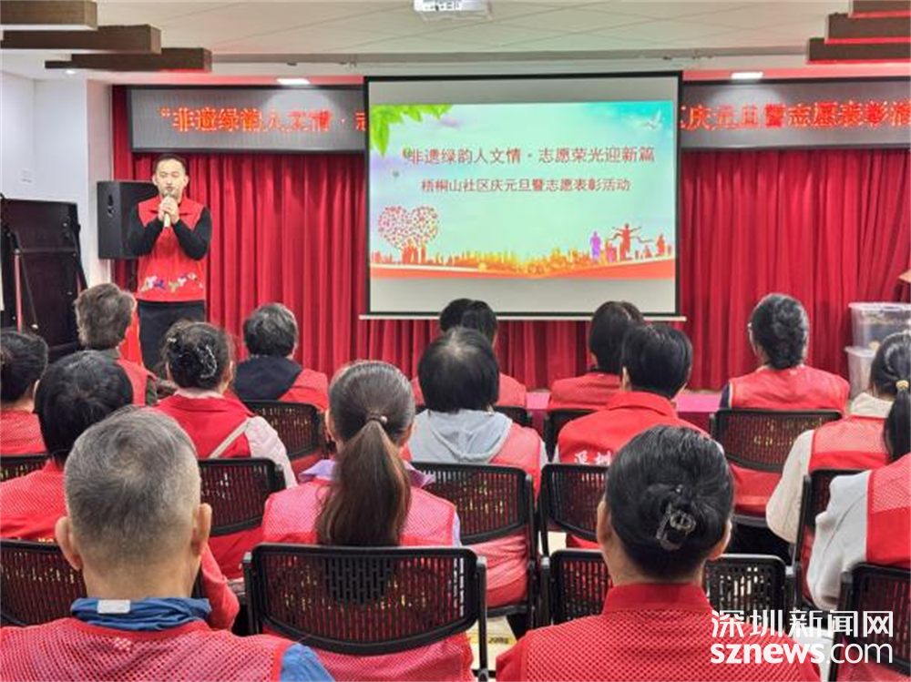 罗湖家园网讯:元旦佳节将至,瑞气迎新。12月26日,梧桐山社区党委、社区党群服务中心及社区新时代文明实践站联合举办“非遗绿韵人文情·志愿荣光迎新篇”庆元旦暨志愿表彰活动。社区领导、社工团队、志愿者代表及辖区居民齐聚一堂,通过表彰先进、非遗展演与民俗体验等形式,致敬志愿力量,传承非遗文脉,共同迎接新年的到来,为新一年的社区建设凝聚奋进力量。
