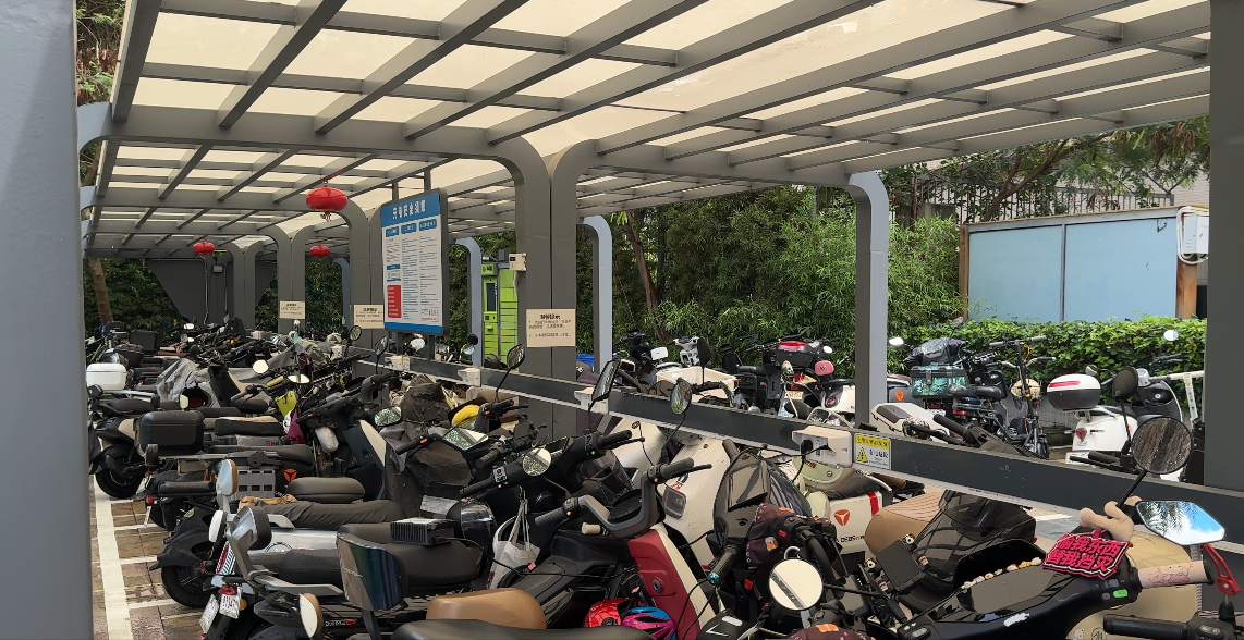项目团队与社区、业委会在盘活小区资源上做文章,经过反复勘察与民意征集,将原本闲置的边角空间微改造为集中、规范的电动自行车停放充电区。统一的雨棚和充电设施,不仅彻底消除了消防隐患,让居民充电更便捷、车辆更安全,释放出的楼道让公共空间也变得整洁畅通,在2024年一举斩获罗湖区“美好家园”与“电动自行车管理”双示范小区称号。