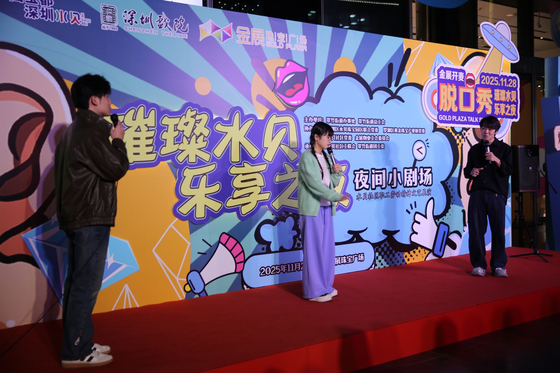 为进一步拓展夜间文化消费场景,11月28日,“夜间小剧场”脱口秀专场在金展珠宝广场南广场成功举办。