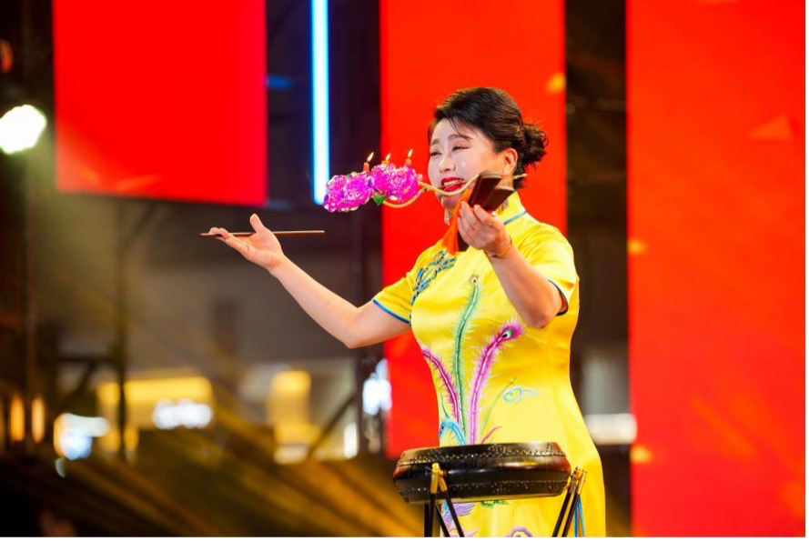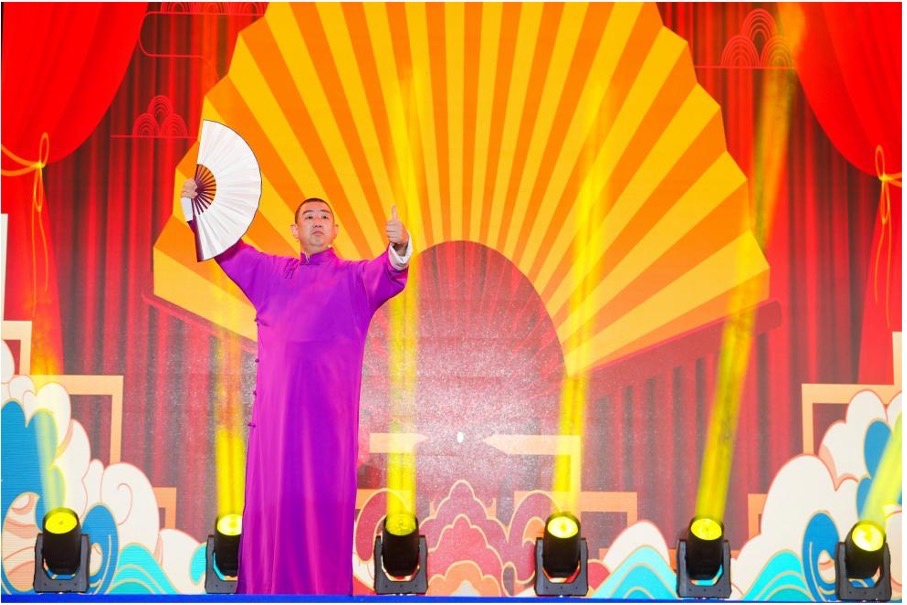 新潮喜剧形式同样戳中观众笑点,脱口秀、漫才轮番炸场。融入《黑神话:悟空》元素的陕北说书《黄风起兮》、大同数来宝《隔辈亲》、相声《成语新篇》、河南喷空《有话好说》、模仿秀《大喇叭》、滑稽表演《快乐炊事员》等则以夸张幽默的风格承包了全场笑点,穿插其中的霸王餐抽奖环节更是将氛围推向高潮,中奖市民的欢呼声此起彼伏。