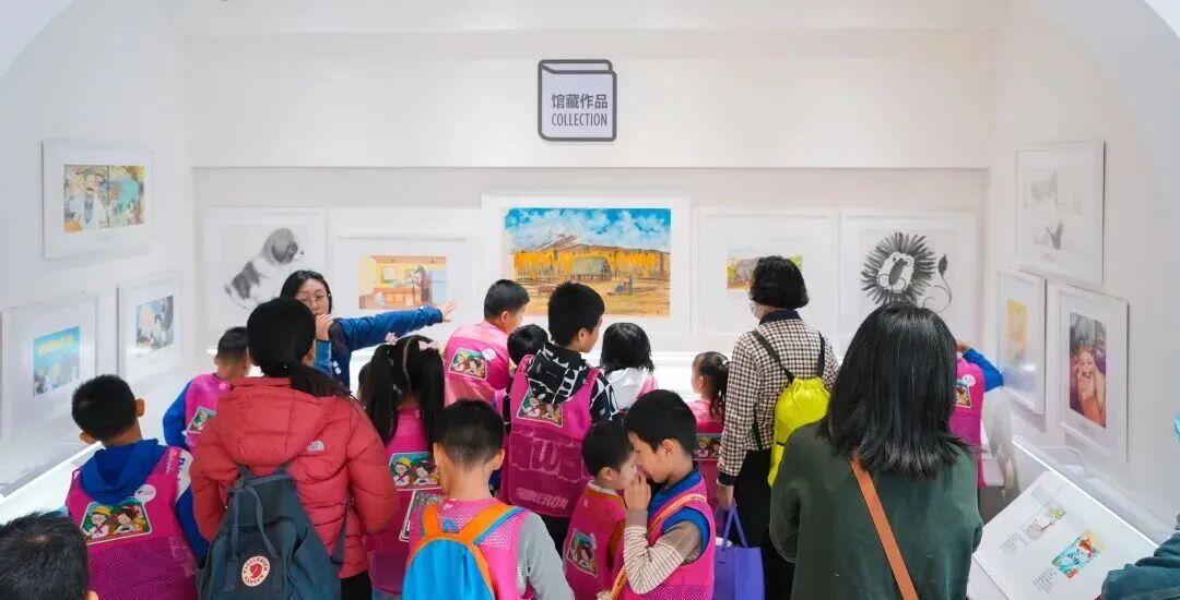 亲子家庭们漫步在图画书博物馆中,专业讲解老师全程伴行,生动追溯图画书的发展脉络,逐一介绍各个时期的珍贵图画书藏品与优秀原画展品,让孩子们直观感受绘本艺术的传承与魅力。