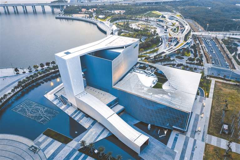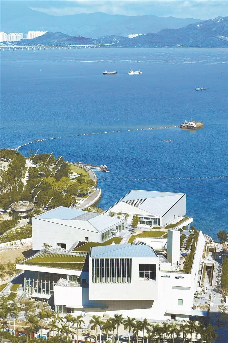 深圳湾文化广场 深圳新时代重大文化设施之一,2025年开馆,位于后海,由马岩松领衔的MAD建筑事务所设计,涵盖设计艺术展览、未来设计学苑、多元文化空间、跨界社交聚落四大功能场域。