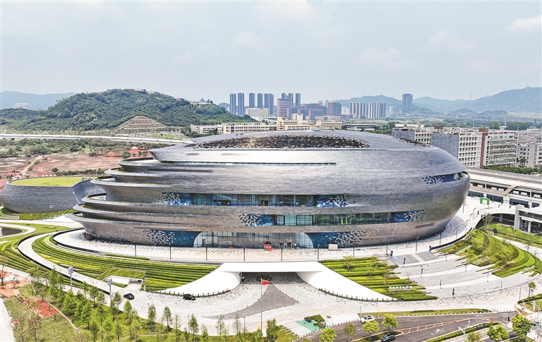 光明文化艺术中心 光明文化艺术中心集文化、演艺、展览、休闲等多功能于一体,包含演艺中心、美术馆、图书馆、城市规划展览馆、文化综合五大功能区,是光明科学城的重要公共配套设施和文化地标。