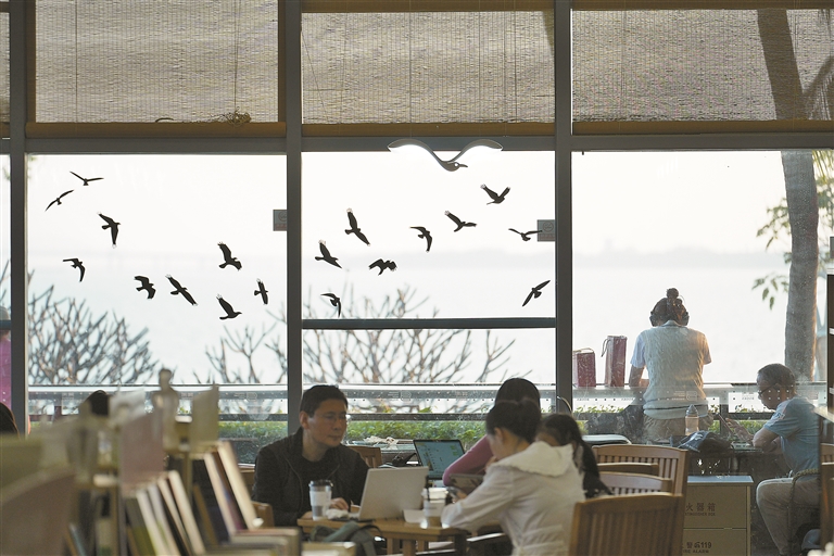 白鹭坡书吧 白鹭坡书吧坐落在深圳湾海岸线上的公园内,三面玻璃幕墙,低头畅游书海,抬头观赏海景,为读者提供阅读和自然的融合体验。