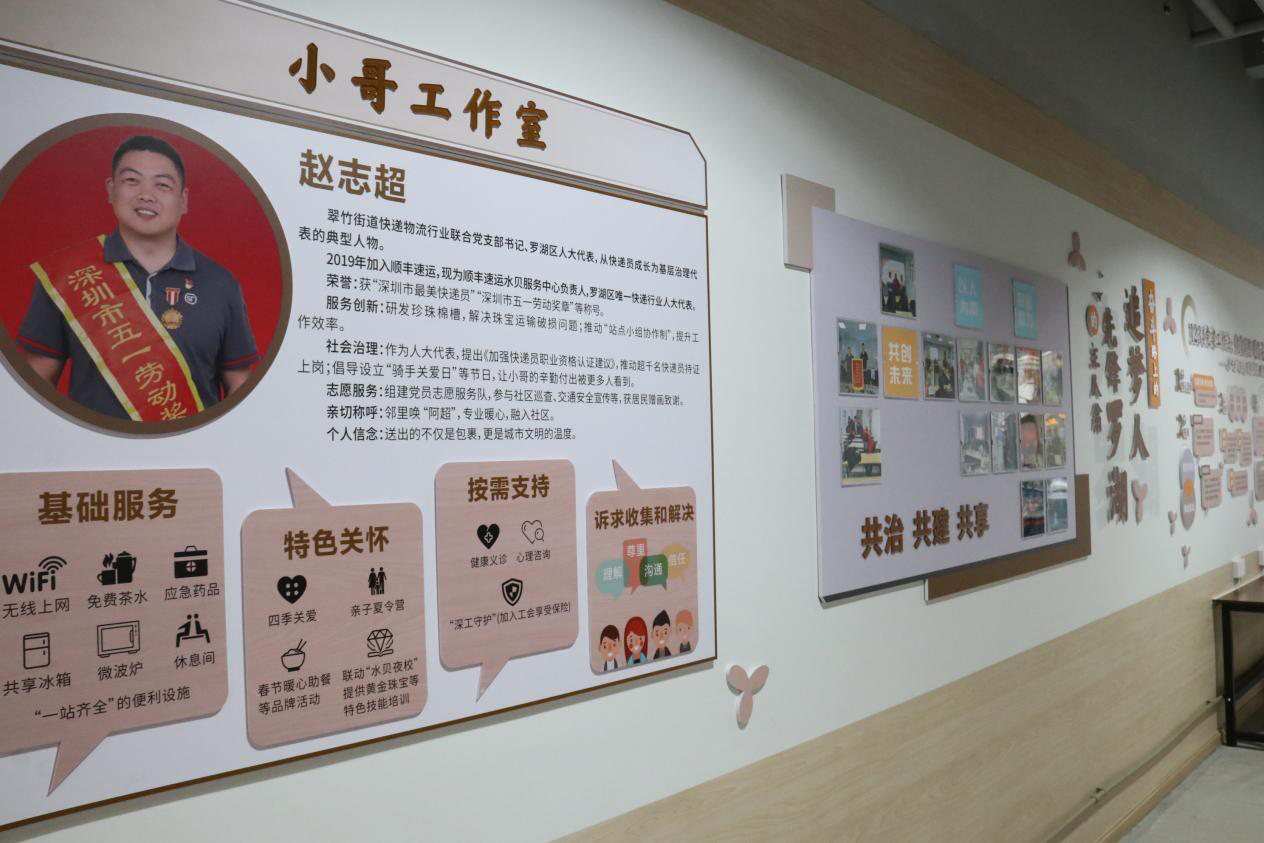 罗湖家园网讯:近日,罗湖区翠竹街道顺丰水贝站点“暖蜂驿站”启用暨“超哥工作室”揭牌仪式举行。这个以深圳市五一劳动奖章获得者、快递员赵志超命名的服务阵地,不仅成为新就业群体在罗湖水贝片区的又一个“家”,也标志着翠竹街道服务新就业群体的实体网络新增一个关键节点——第7个“暖蜂驿站”与首个以优秀小哥个人命名的工作室同步投入运营。