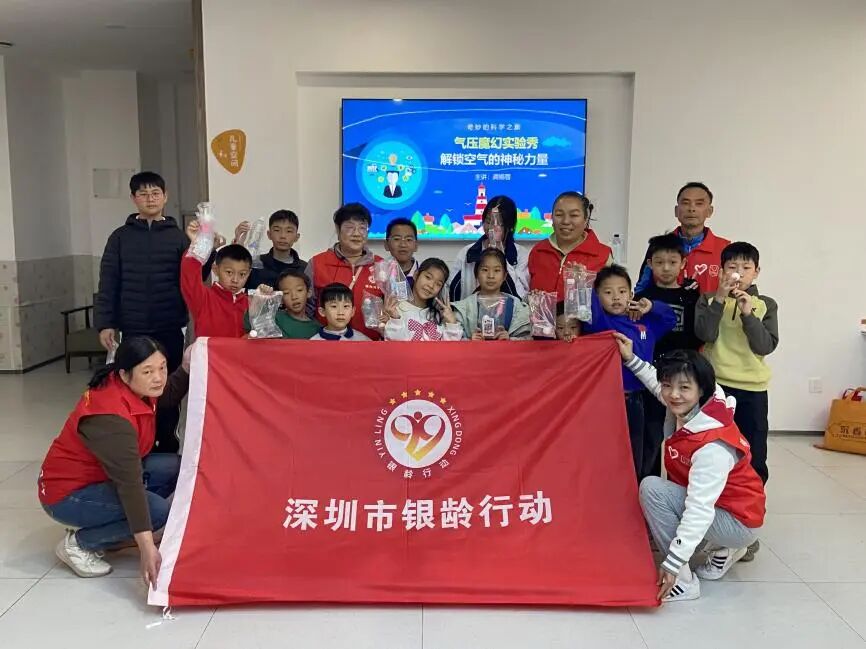 活动第二个环节,深圳市老年科技工作者协会的龚老师带领孩子们进入气压的奇妙科学世界。通过一系列直观有趣的实验,孩子们亲身体验了气压的“神奇力量”。