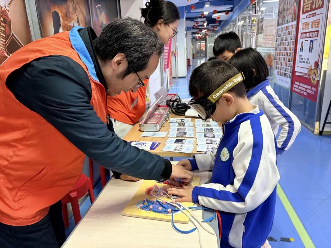 本次活动选址于课外辅导与艺术培训机构集中区域,紧密结合学生课后活动特点与认知规律,精心设置了三个互动体验环节,将严肃的禁毒知识转化为青少年喜闻乐见、易于吸收的沉浸式学习体验。