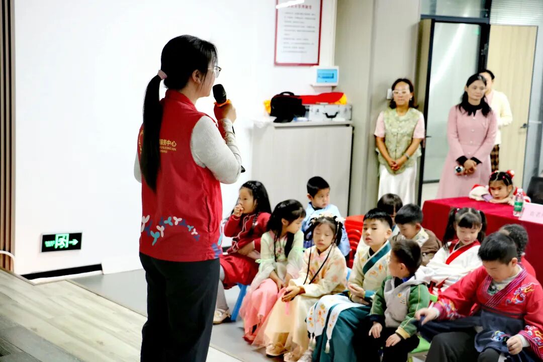 典礼在庄重的传统文化礼仪中开始。全体师生与家长共同诵读国学发愿文,并向孔子像行鞠躬礼,营造出浓厚的文化传承氛围。现场播放的课程回顾影像,生动呈现了亲子共读、礼仪练习、情景实践等多个学习场景。社工表示,该课程有效搭建了“社区引导、家庭参与、文化涵育”的共育平台。国学中心的欧阳老师则从教学实践出发,分享了孩子们从诵读经典到行为养成的转变过程,引发家长广泛共鸣。