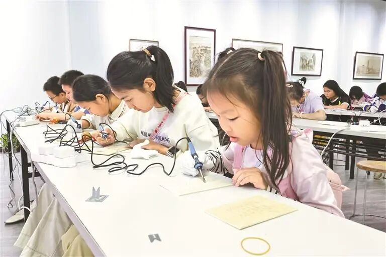 近日,玉塘街道红星社区依托民生微实事项目——活力“星”社区青少年研学成长营,组织30名青少年走进光明区烙画基地,开展非遗烙画研学体验活动,通过“听、看、学、做”沉浸式学习,让青少年近距离感受传统技艺,在亲手创作中增强文化认同。