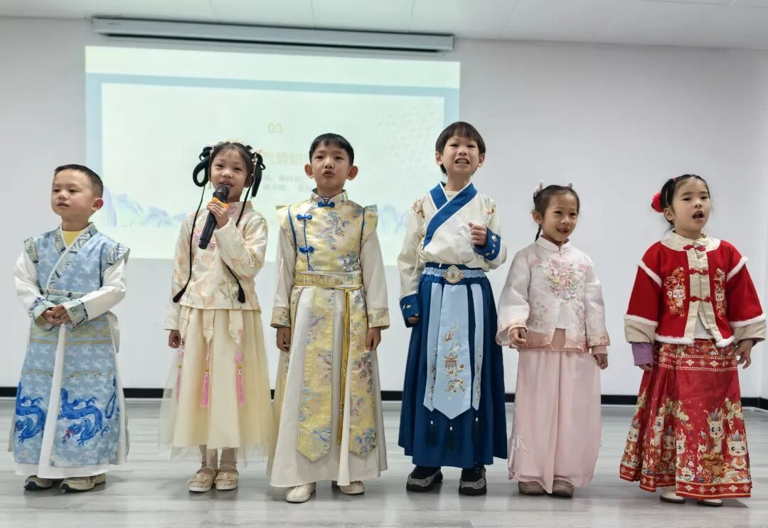 展演环节尤其体现了“知行合一”的教学特色。由孩子们自主演绎的情景剧《排排队》,将《弟子规》中“长者先,幼者后”的训导转化为活泼的舞台故事,形象传递出礼让互助的文明理念。亲子合诵、歌舞表演等节目,则展现了孩子们在传统文化浸润下的全面成长。多位家长表示,课程不仅帮助孩子明礼守信,也让家长在陪伴中重新审视家庭教育,实现“双向成长”。