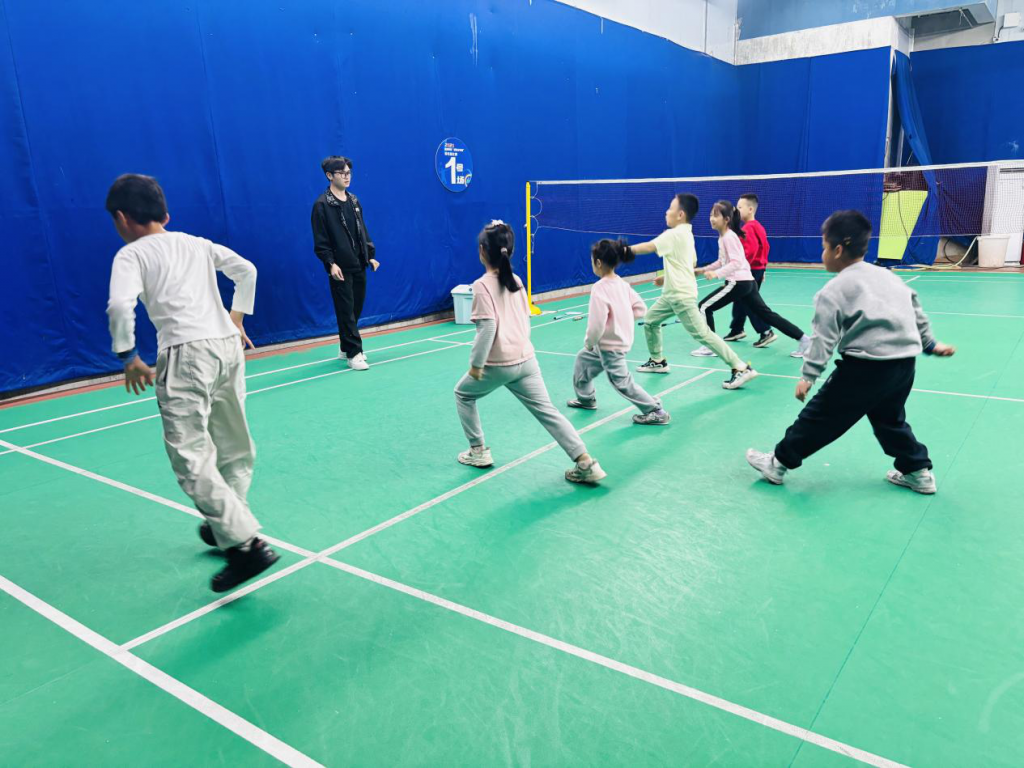 活动伊始,教练首先带孩子们做了热身运动,接着向孩子们介绍了羽毛球的基本规则和安全注意事项,随后通过示范和互动,细致地教授了握拍姿势、正反手挥拍及基础步法。练习环节中,孩子们两人一组进行颠球和对打练习,教练在一旁逐个纠正动作,鼓励大家大胆尝试。为了提升训练的趣味性,活动还穿插了敏捷梯、反应力小游戏等体能项目,让孩子们在欢笑中提升协调性与耐力。1