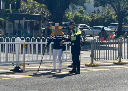 发现险情后,铁骑第一时间作出反应,迅速明确分工。其中两名队员立即加快脚步赶到老人身后,小心地跟在一旁做好安全防护,防止后方车辆不慎碰到老人;另外两名队员则快速跑到前方路口,通过手势引导过往车辆减速避让,提醒驾驶员注意前方行人。在铁骑默契配合下,过往车辆有序避让,最终成功将老人安全引导至人行道的安全区域。