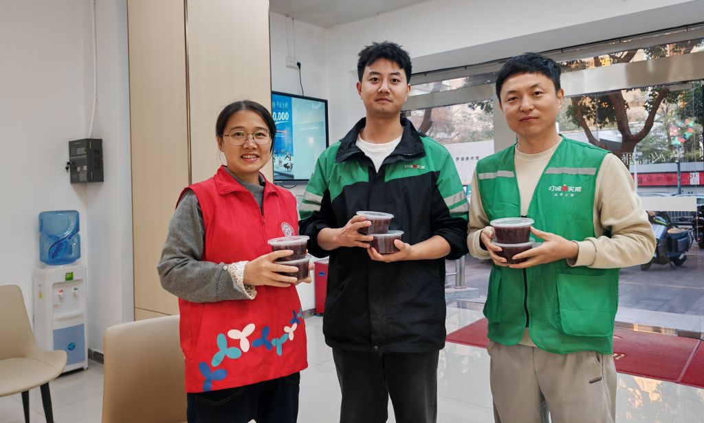 随后,社区工作人员与志愿者们组成“暖心送粥小队”,带着打包好的热粥兵分多路开展慰问:既上门将粥送到高龄、独居长者手中,关切询问老人身体状况与生活需求,细致叮嘱冬季防寒保暖,让老人们在寒冬里收获家人般的暖意;也为街头坚守岗位的环卫工人、外卖骑手送上热粥,一句句真挚的“辛苦了”,瞬间驱散了冬日寒意,让一线工作者倍感暖心与慰藉。3
