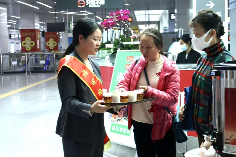 针对客流较大的深圳北站枢纽,春节期间,深铁集团将于每日9点至18点开通爱心接驳车,免费提供点对点接驳服务。各交通枢纽同步推出爱心客服台、志愿者服务、“最后一公里”等便民服务,以“不打烊”的坚守为市民提供有温度的出行体验。