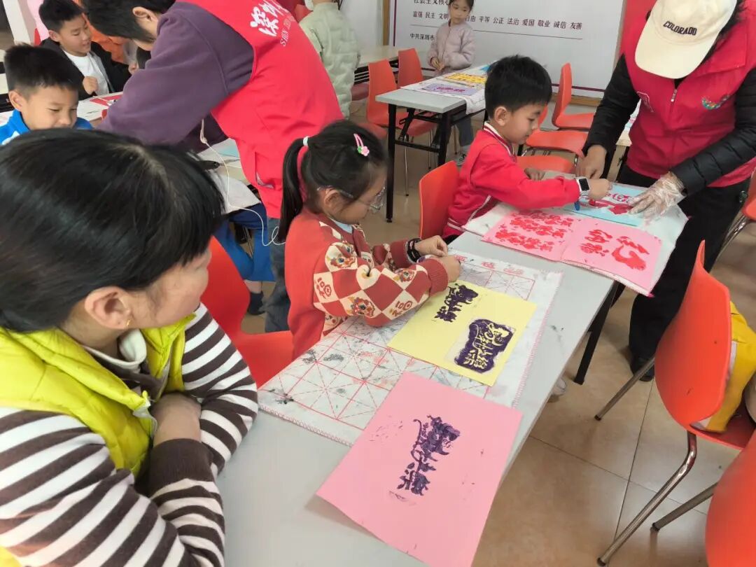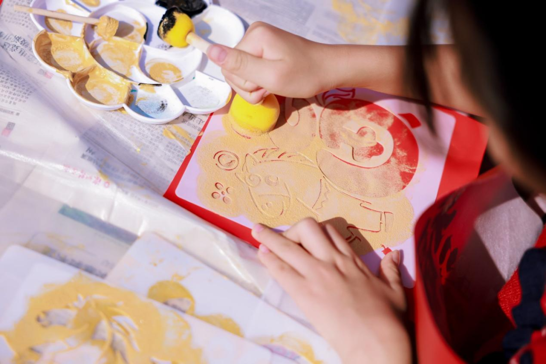 宣纸与墨香交融,马蹄、福字等寓意吉祥的图案在孩子们手中逐渐成型,一张张独特的马年拓印作品承载着大家的期待与创意,现场充满了欢声笑语。