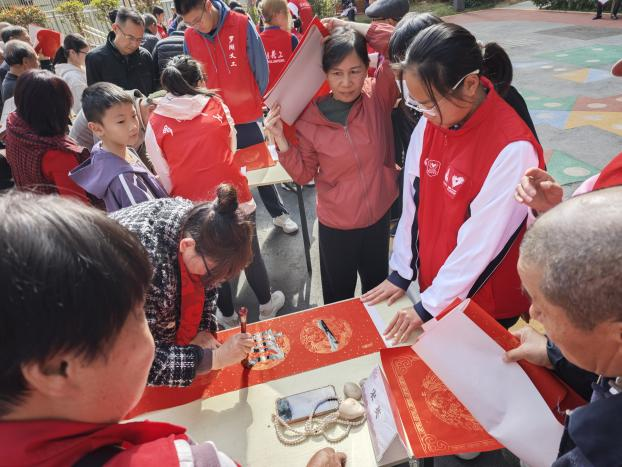 罗湖家园网讯:2月3日下午,在金鹏社区党委支持下,金鹏社区党群服务中心联合中海物业、东湖街道长者服务中心共同举办了“马上迎新”同乐喜迎新春——金鹏社区多元服务温暖邻里情活动,为社区居民带来了一场集便民服务、健康关怀与文化体验于一体的新春盛宴,现场洋溢着浓厚的节日氛围与邻里温情。