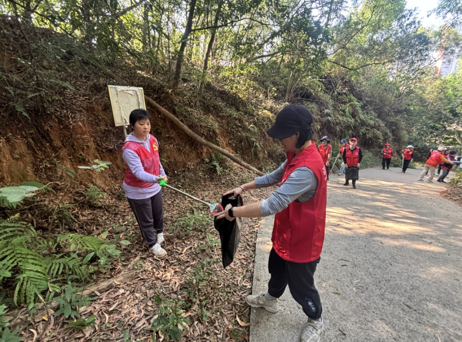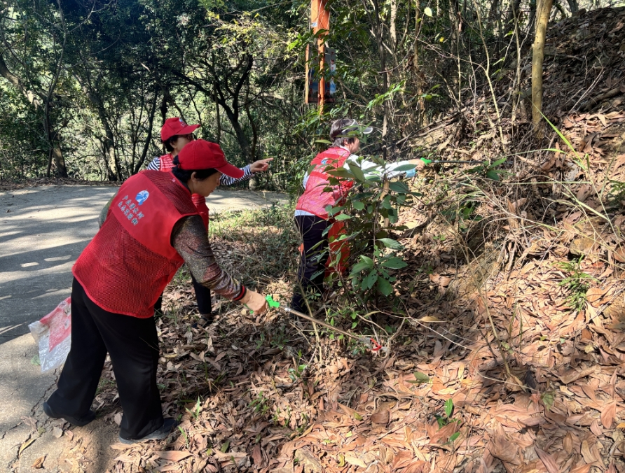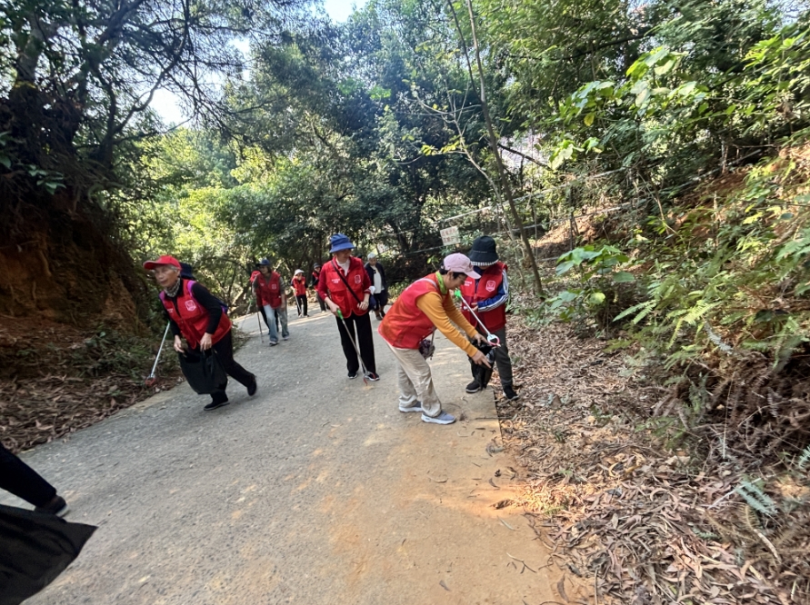 活动现场,志愿者们身着志愿服装,精神饱满、分工明确,迅速投入到各项志愿工作中。在山林巡查环节,志愿者们沿着山林步道仔细排查,重点查看是否存在违规用火、植被损坏等安全隐患,严防森林火灾发生,守护山林生态安全。与此同时,另一组志愿者手持夹子、环保垃圾袋等工具,对山林沿线、步道周边的白色垃圾等进行全面清理,不放过任何卫生死角,以实际行动践行“环保无小事,行动在当下”的理念。此外,志愿者们向过往居民和登山群众普及护林防火知识、生态保护常识,引导大家摒弃不文明行为,自觉抵制野外违规用火,主动参与到生态保护中来,争做文明护绿使者。
