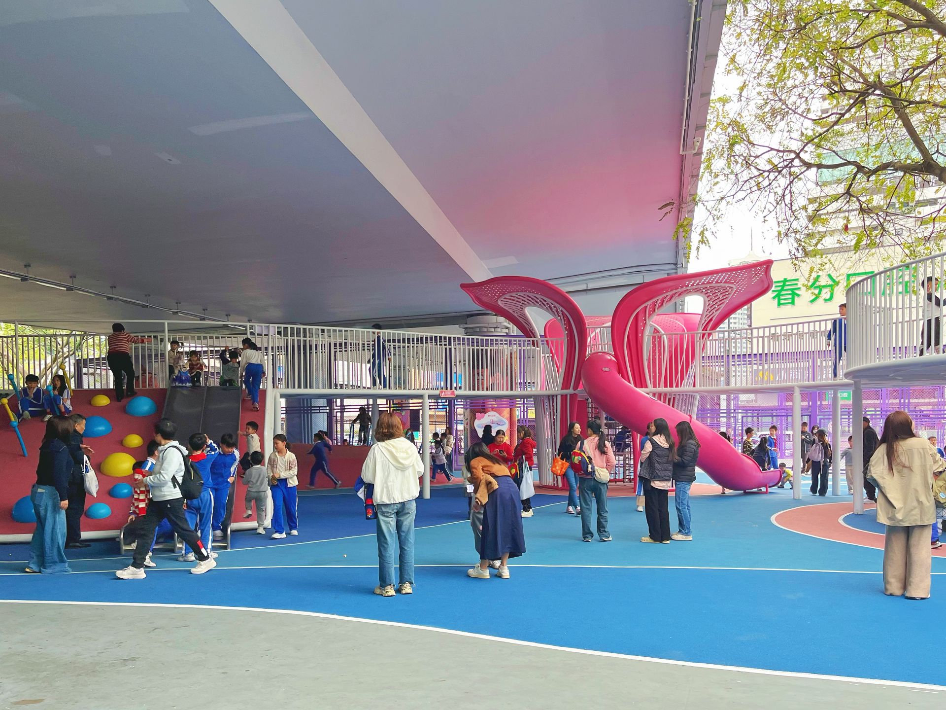 人民南商圈,深圳港人浓度最高的街区,来深港人携家带口在此游憩,粤语声声入耳。新近开放的春风乐园,以其多巴胺配色和复合化功能,迅速成为人民南深港融合消费街区内的一处活力地标,日均客流量超1500人次。从物理隔阂上的“断点”,到人气满满的“聚点”,这片近万平方米的桥下空间经历了何种蜕变,其背后又暗含怎样的治理巧思?近日,记者前往实地进行了走访。