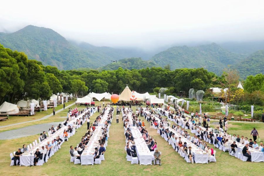 这是深圳首届春花宴的现场。本次活动以花为媒、以素会友,推出千人素食长桌宴开席、直升机低空花游云端赏花、碧道露营、春日市集、文化展演一站式打卡活动,打造沉浸式春日文旅盛宴,向外界传递健康、低碳的生活理念。
