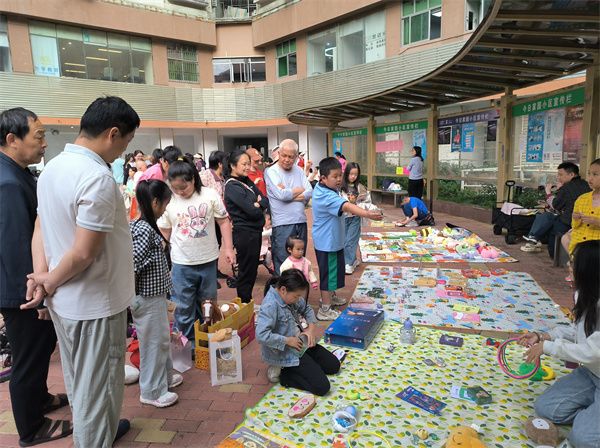 在亲子跳蚤市场区域,一个个摊位整齐排列,大小“摊主”们热情高涨,积极推销家中闲置的书籍、玩具等物品。孩子们在家长的陪伴下,既体验了交易的乐趣,也让旧物得以循环利用,焕发新生。