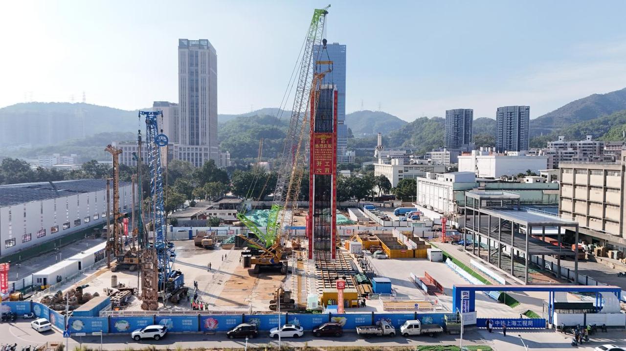 深汕铁路罗湖北站地下连续墙首个钢筋笼成功吊装